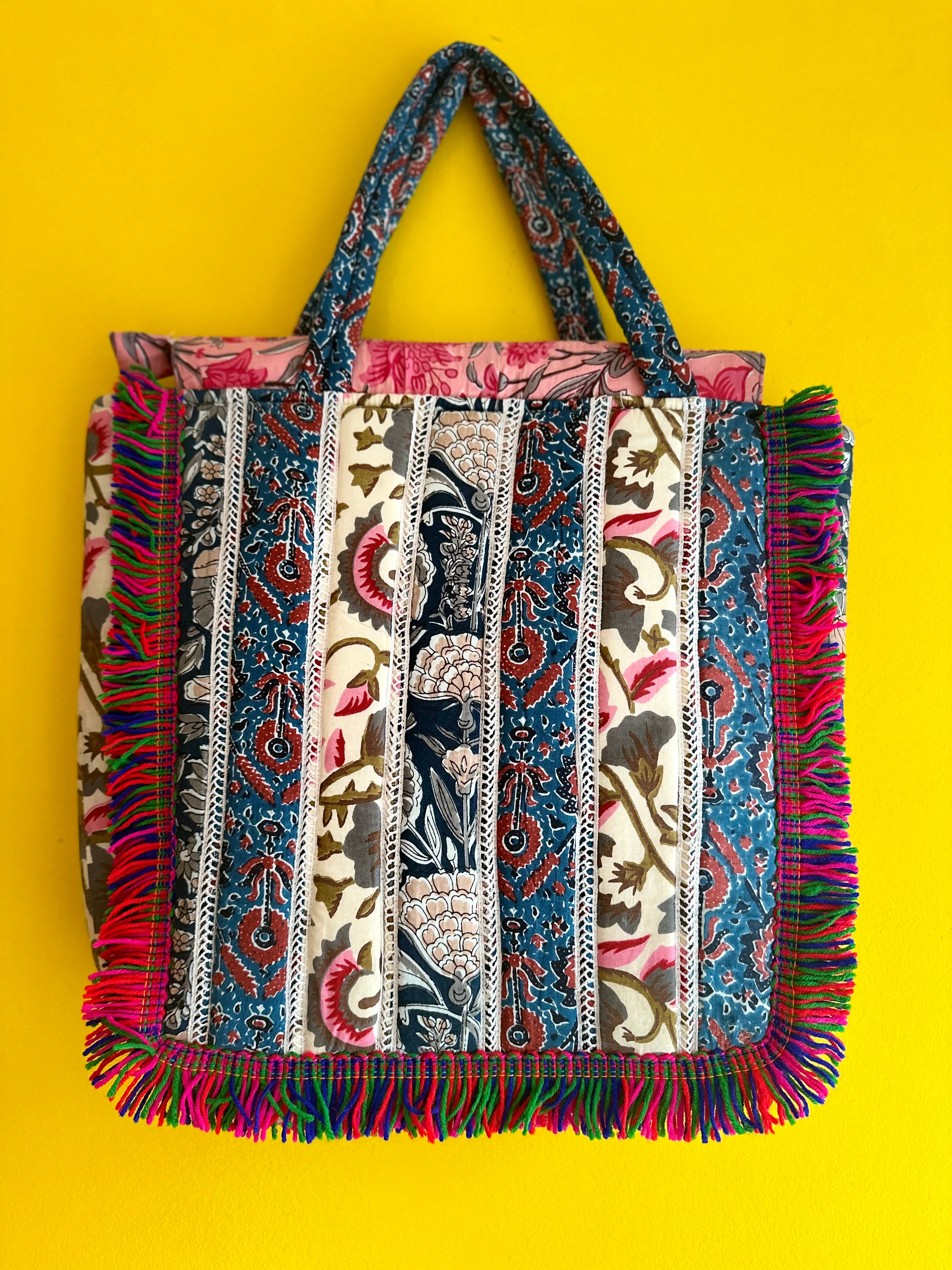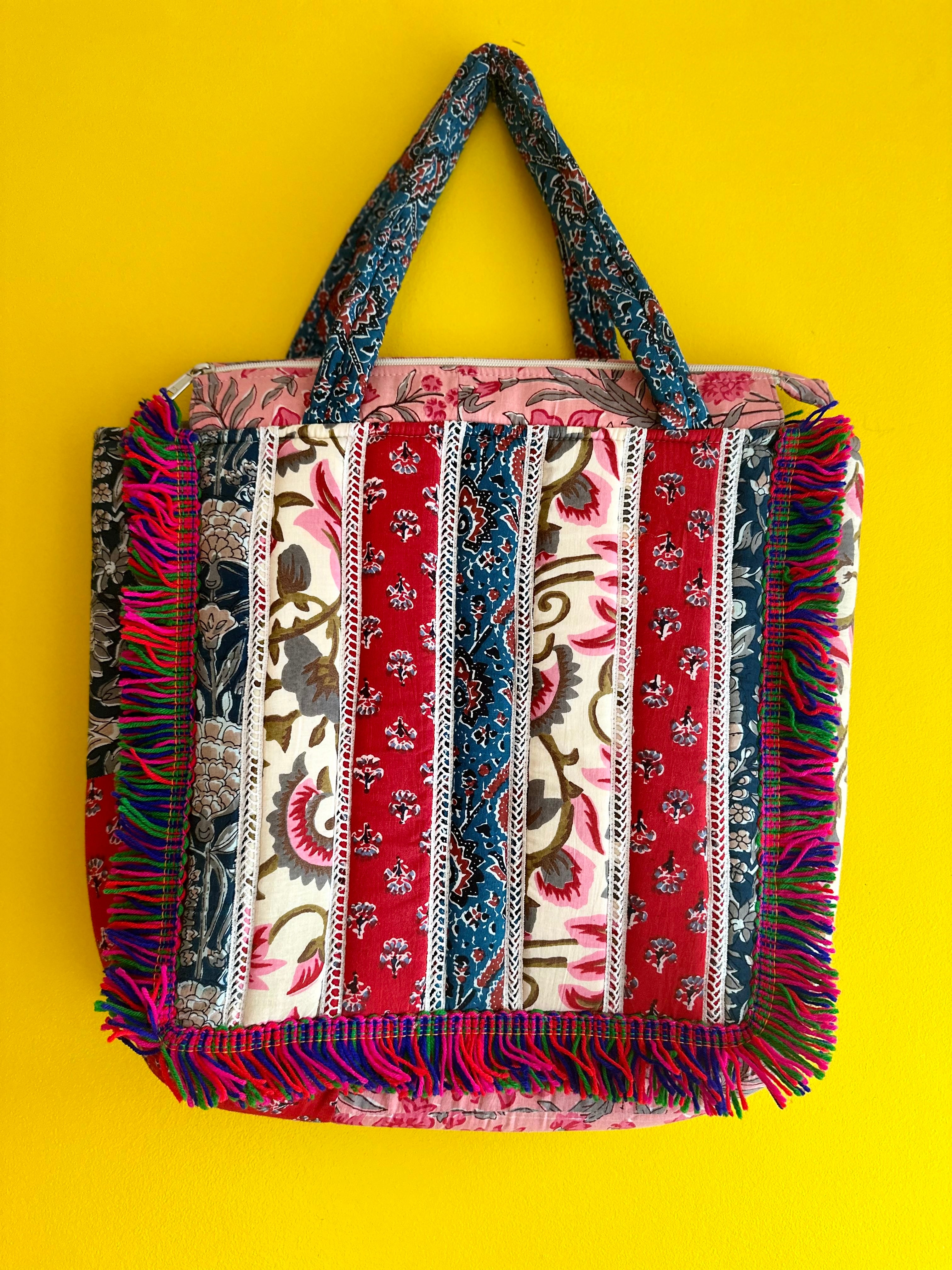 Our shoulder bags are a love letter to timeless craft and conscious living. Handmade from rescued dead stock fabrics, each bag tells a unique story — made by the hands of women artisans who pour heart and heritage into every stitch. Adorned with tassels, this bags move with you, adding a whisper of tradition to your every step. Elegant, versatile, and made to last.