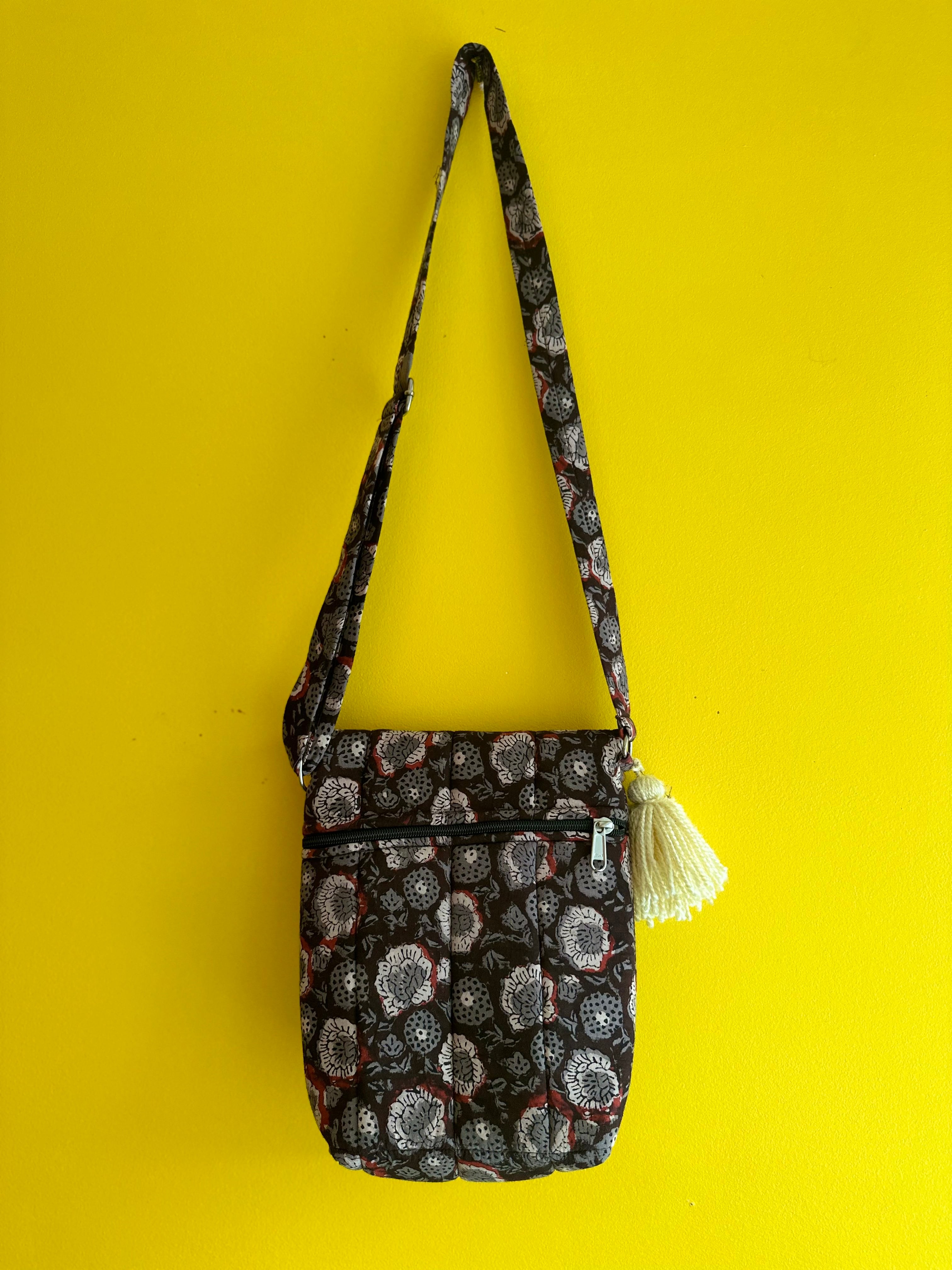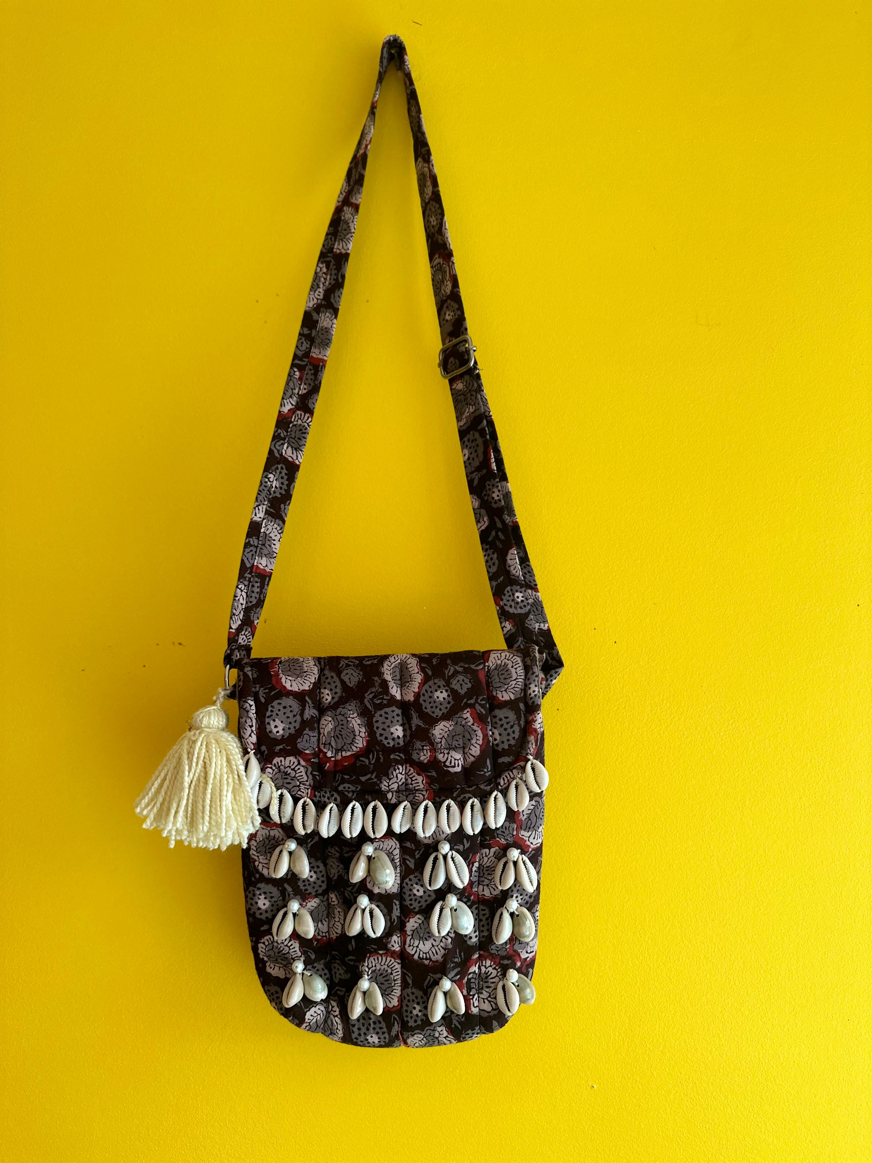 Aazad's sling bag is handcrafted designed for life's lighter moments. Made from vibrant dead stock fabrics and finished with joyful embellishment — shells, these bags are a true fusion of functionality and artistry. Lightweight, charming, and full of character, they keep your essentials close while celebrating the hands and hearts that brought them to life.
