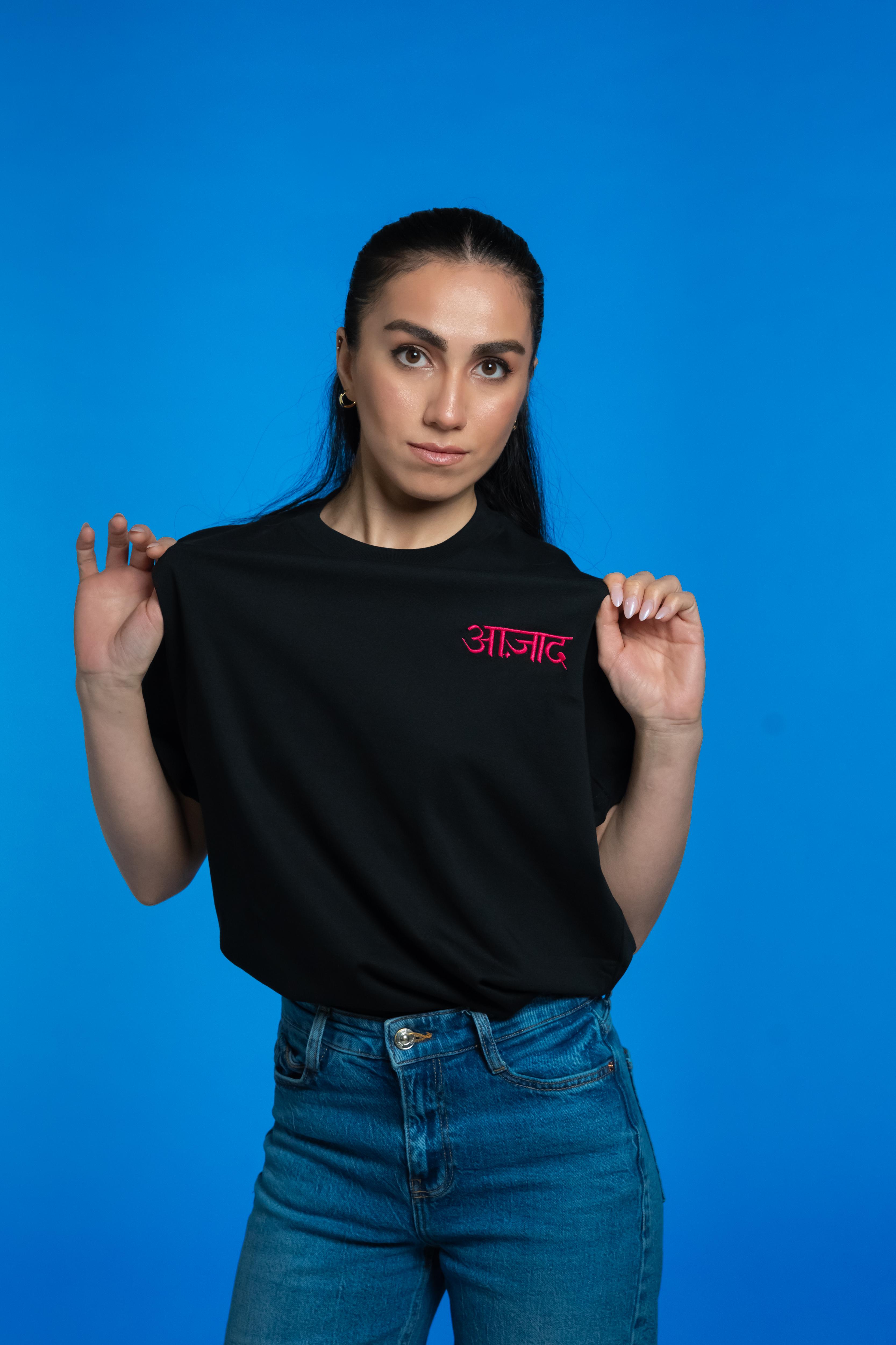 This 180 GSM T-shirt offers the perfect blend of comfort, durability, and understated elegance. It provides a soft, breathable feel, making it ideal for everyday wear. Featuring Aazad's logo embroidered in Hindi on the front, it subtly exhibits the brand’s identity while celebrating craftsmanship.
