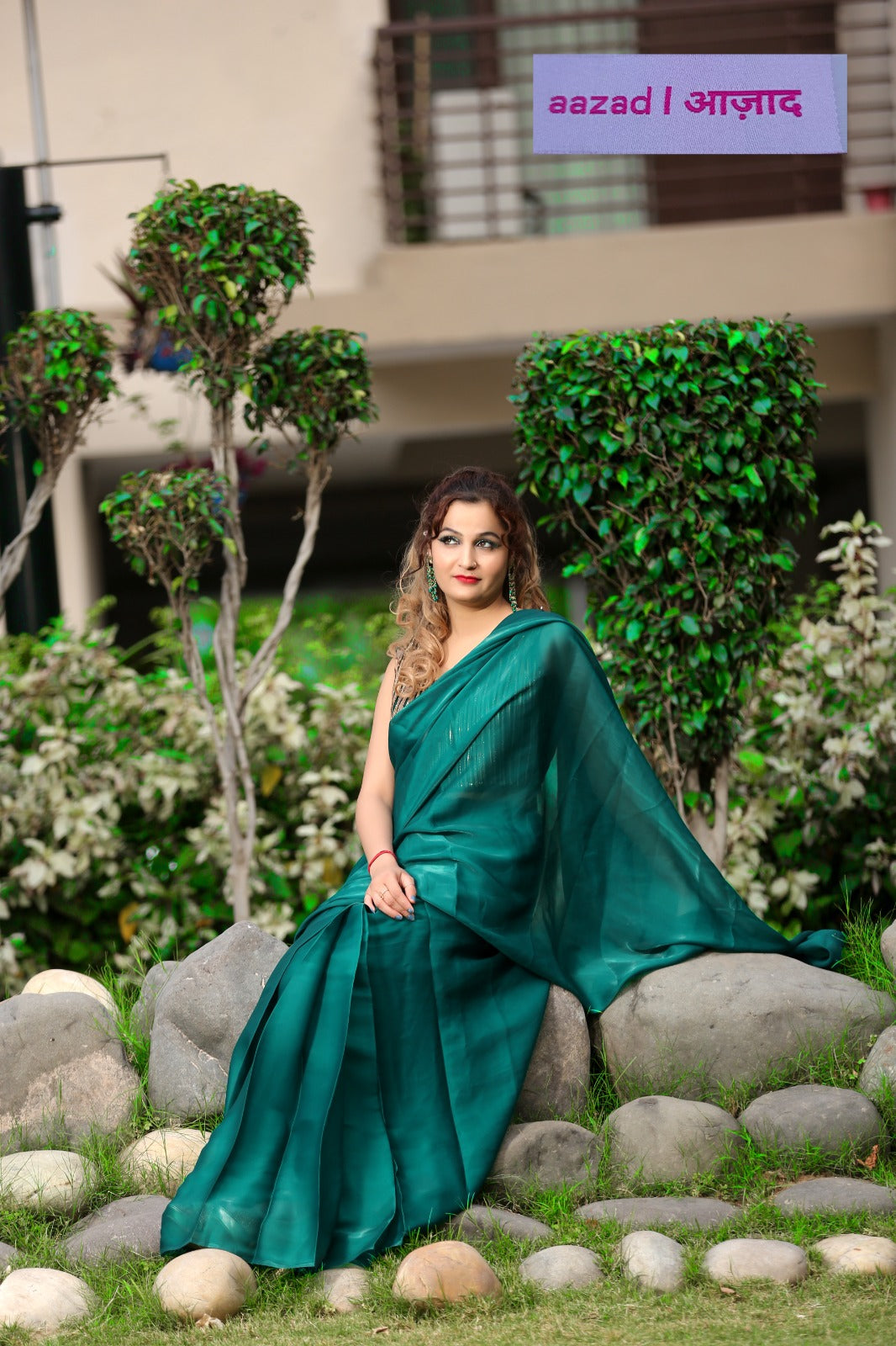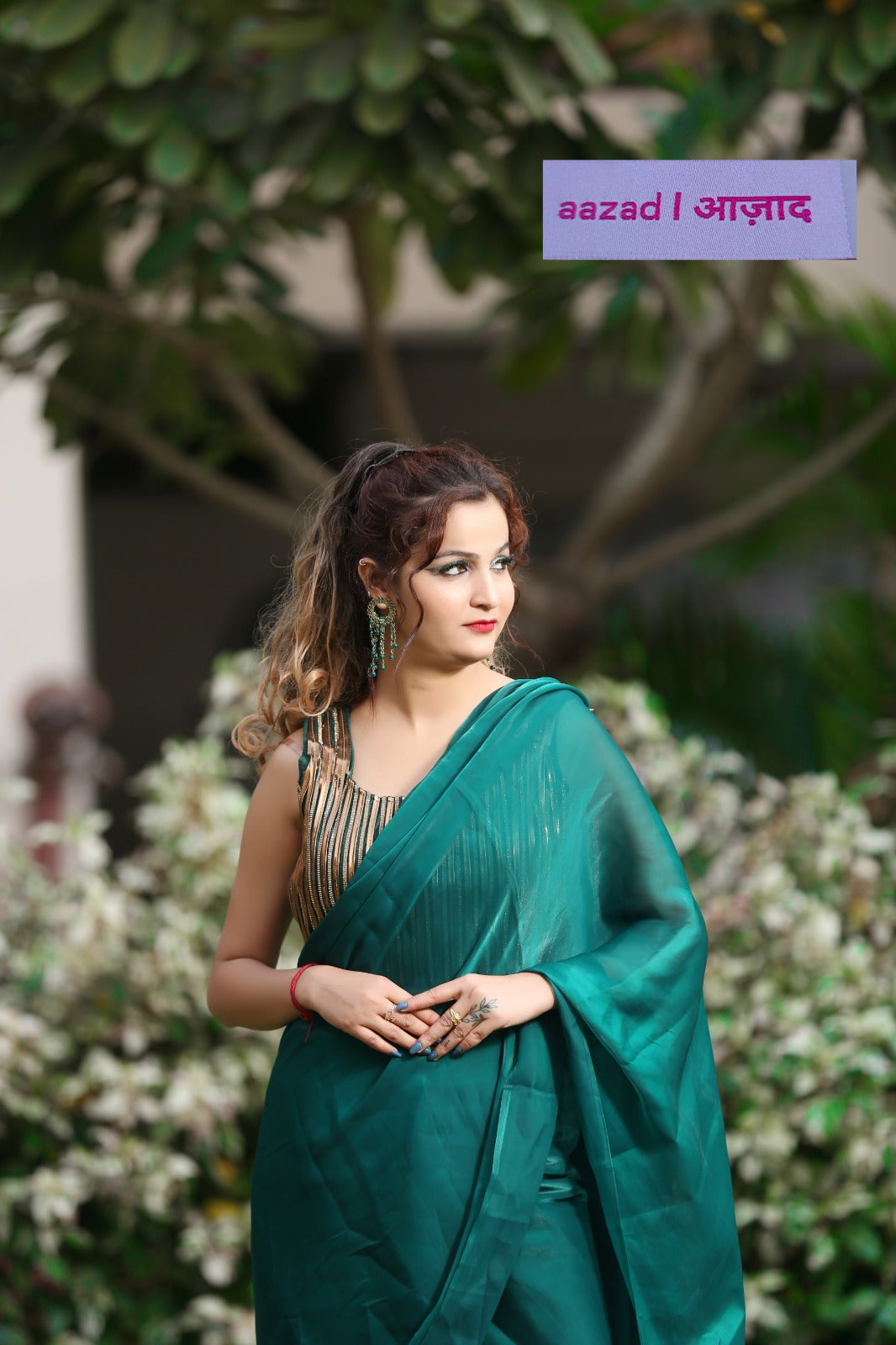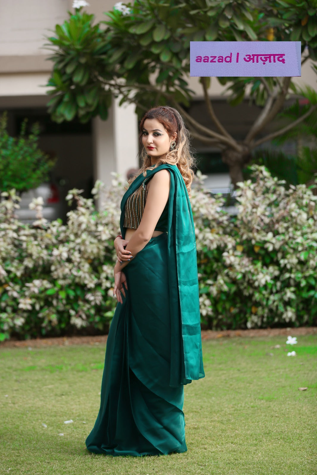 functional Saree comes pre-pleated and pre-stitched and ready to wear. It is made of beautiful high quality georgette fabric. The saree has a pre-stitched petticoat inside. It doesn’t come with a blouse.