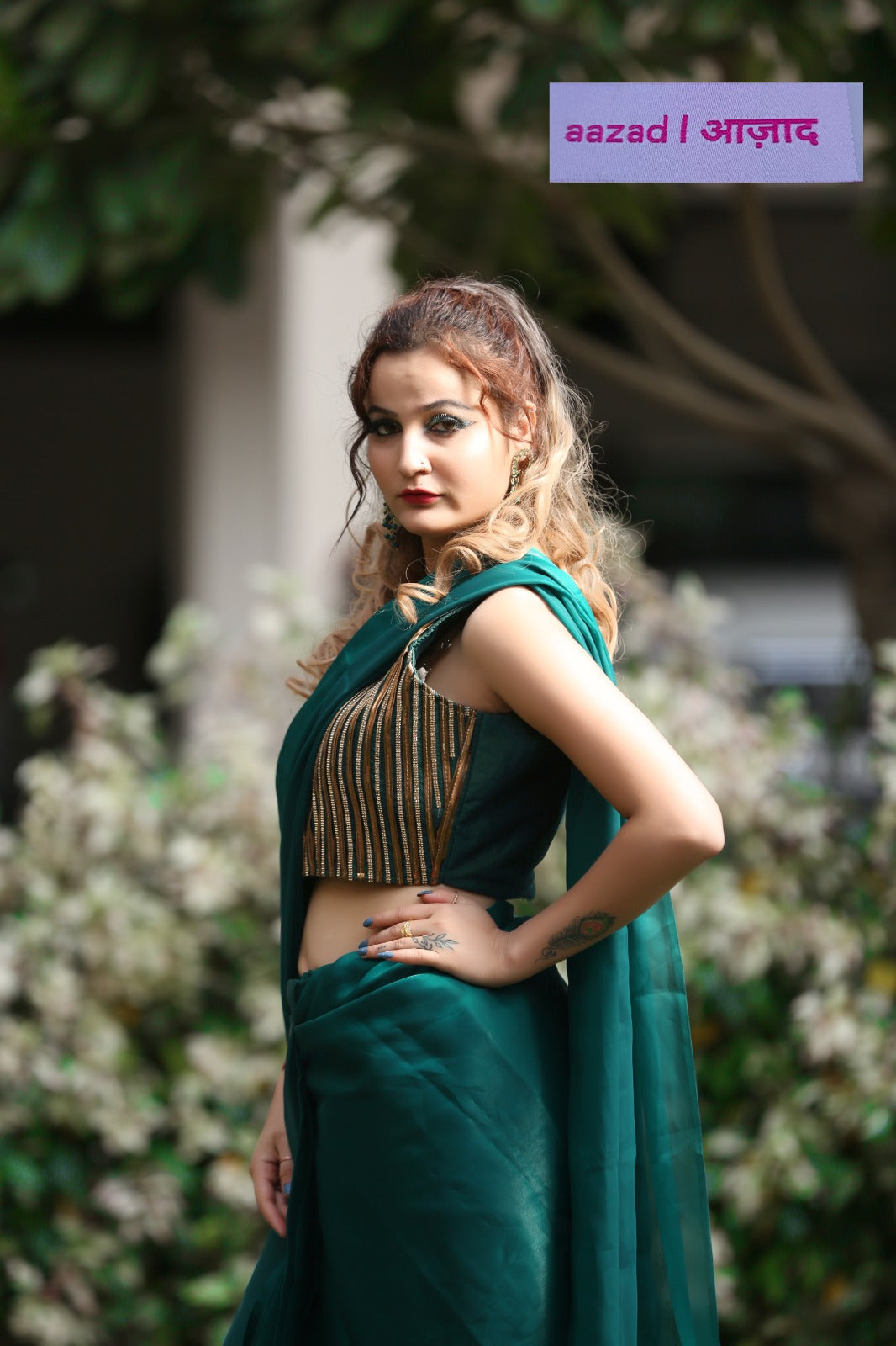 The Stylish and elegant ready to wear saree is the perfect and a must addition to your wardrobe. Handmade with careby local artisans, this designer saree features intricate details and is perfect for any occasion, whether it be wedding, party or festive event. Made from high-quality materials, this traditional yet modern saree is both comfortable and durable.