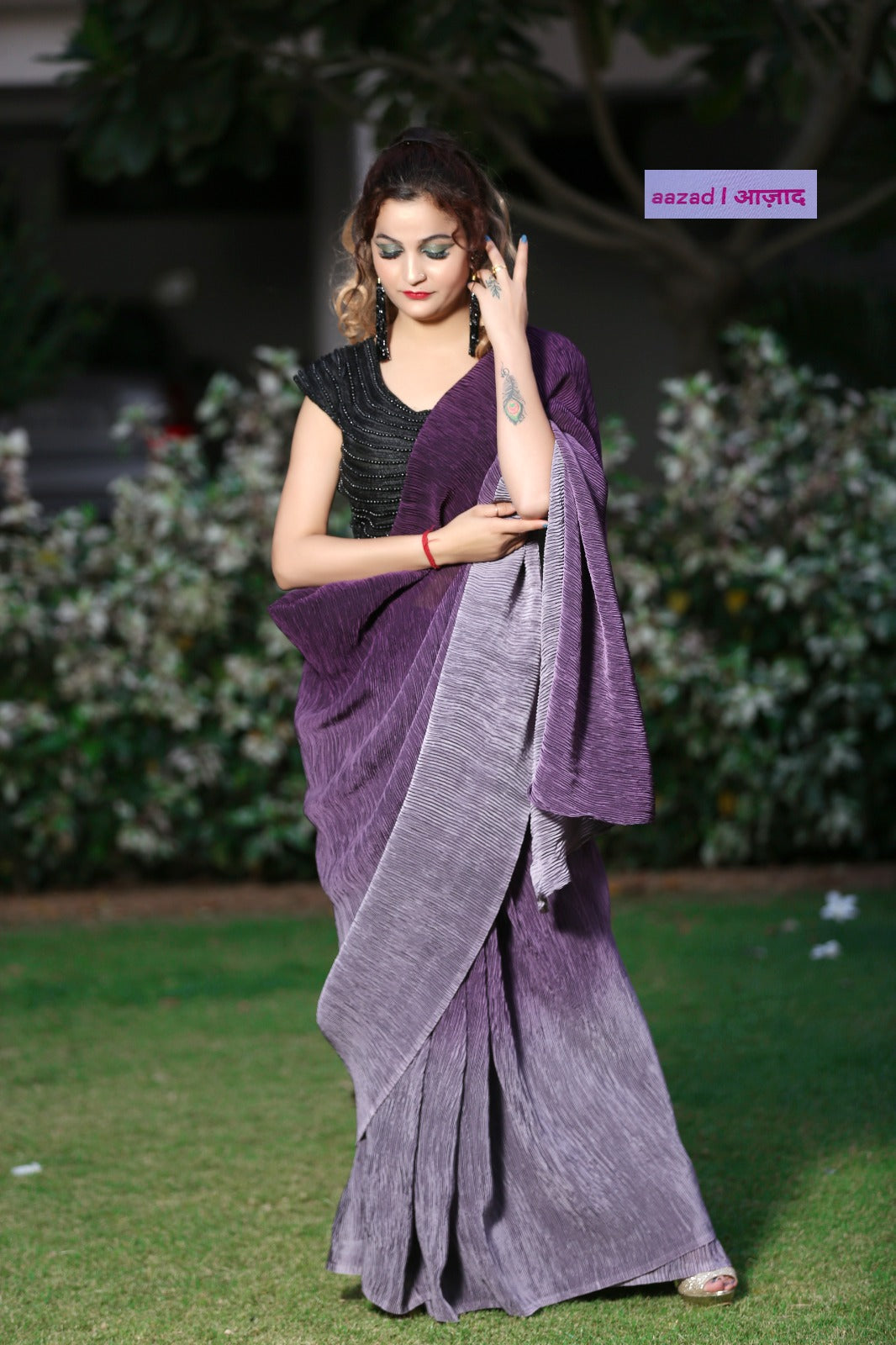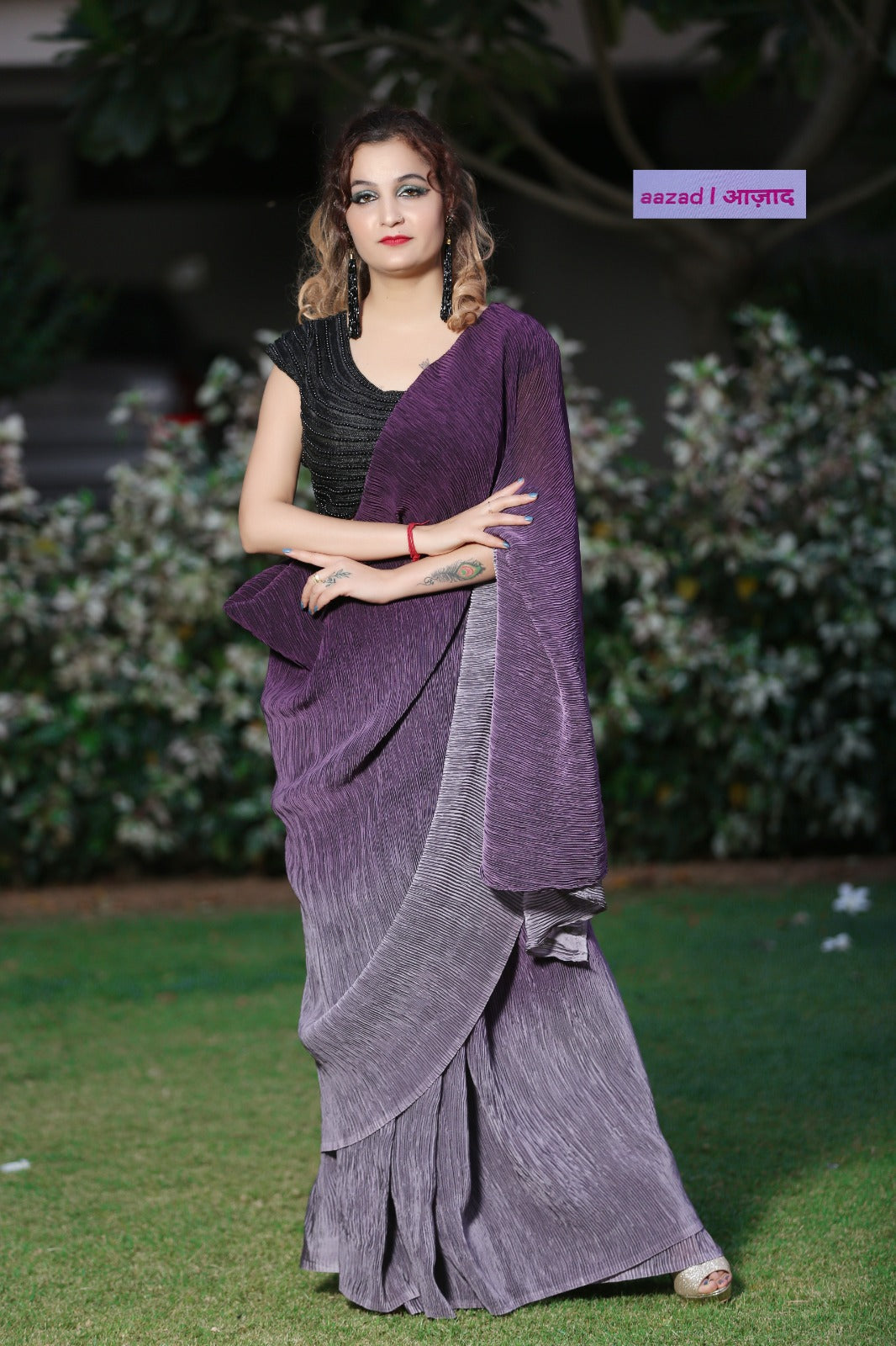 Crushed Fabric Pre Stitched 'Conquer from within ' Saree