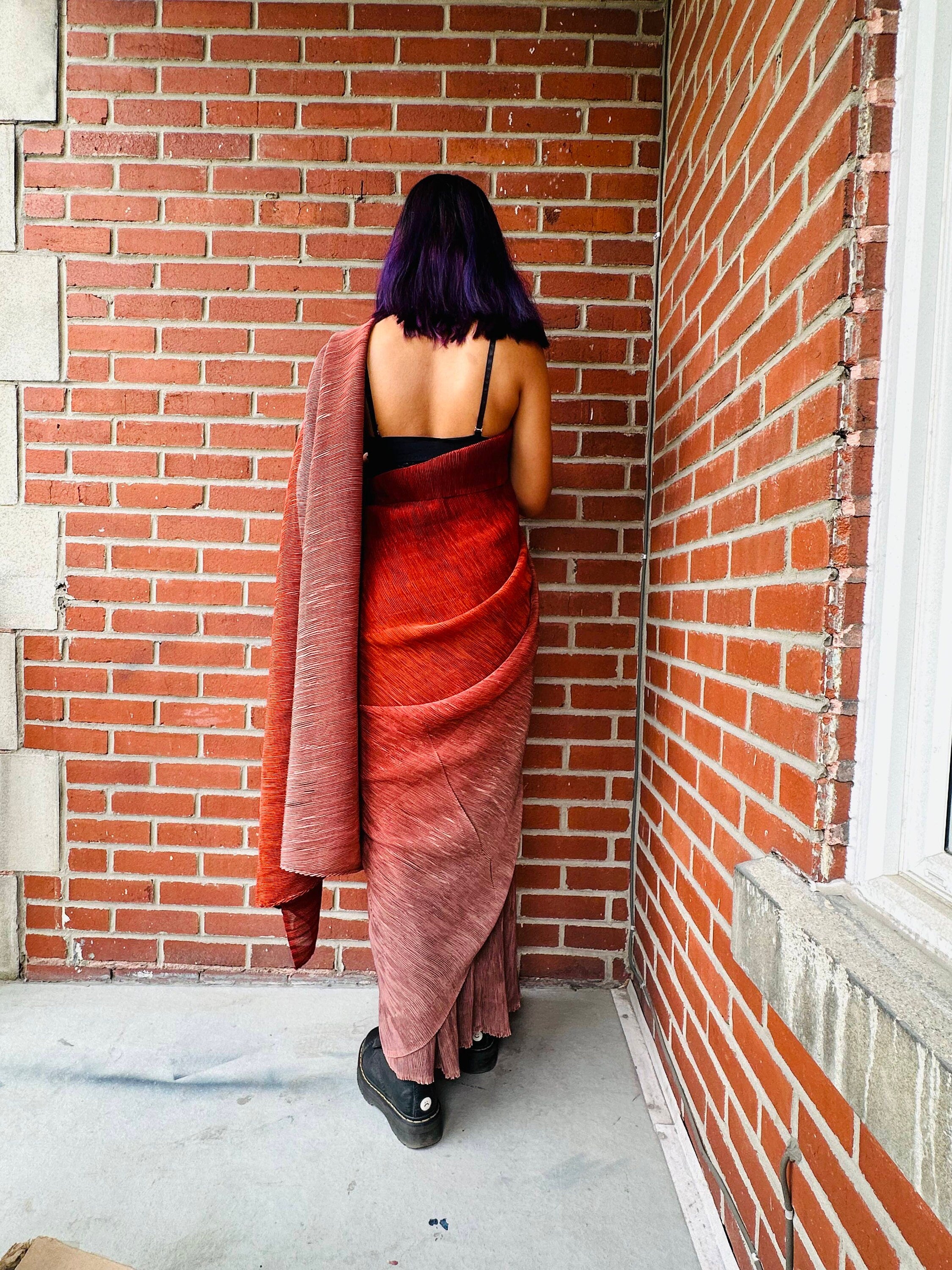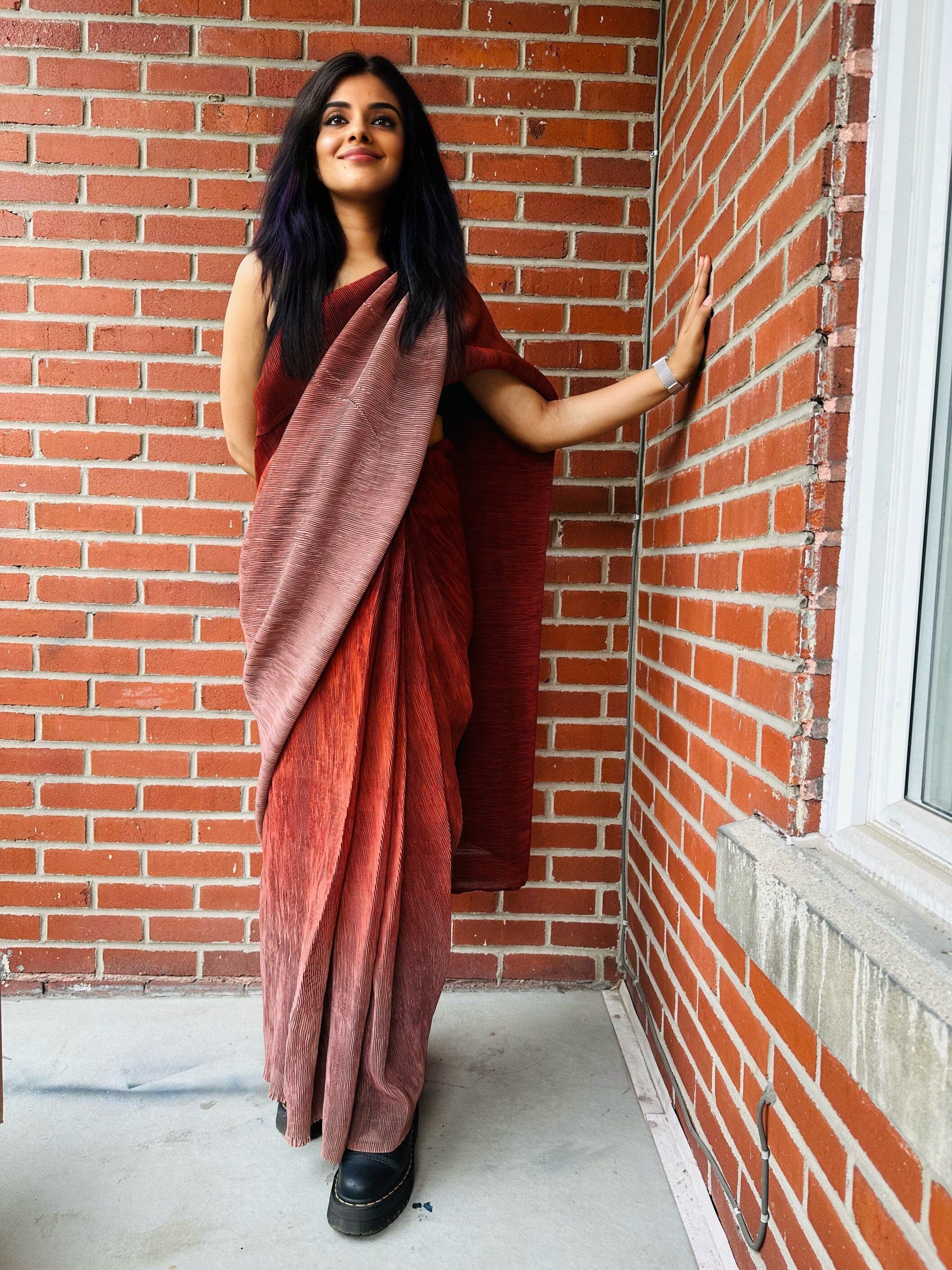 Crushed Fabric Pre Stitched 'Conquer from within ' Saree
