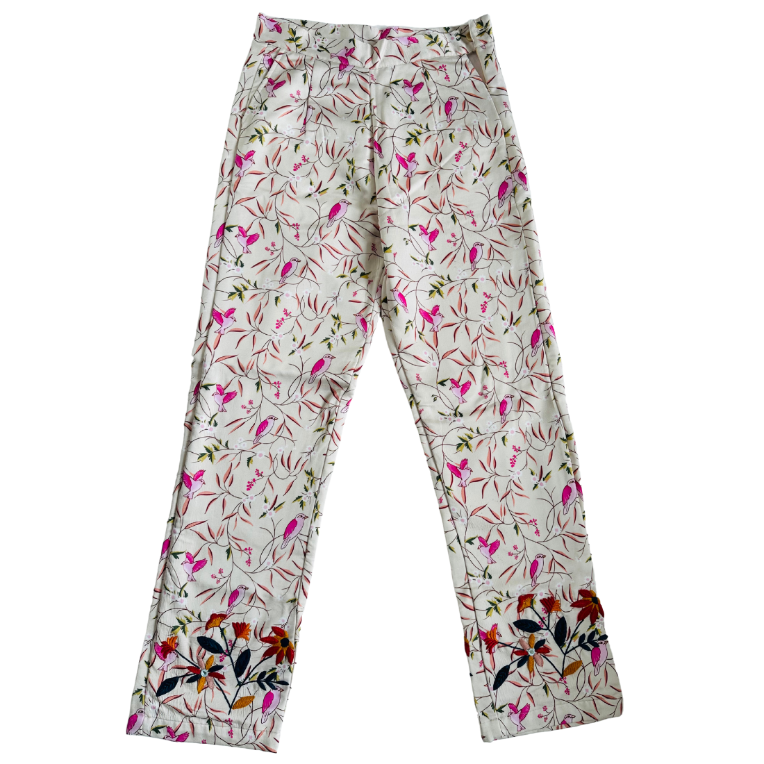 Complete your ensemble with these pants, designed to complement our hand-embroidered blazer. Featuring unique bird print, these pants embody Aazad's philosophy of freedom and self-expression. It is a harmonious, nature-inspired design.